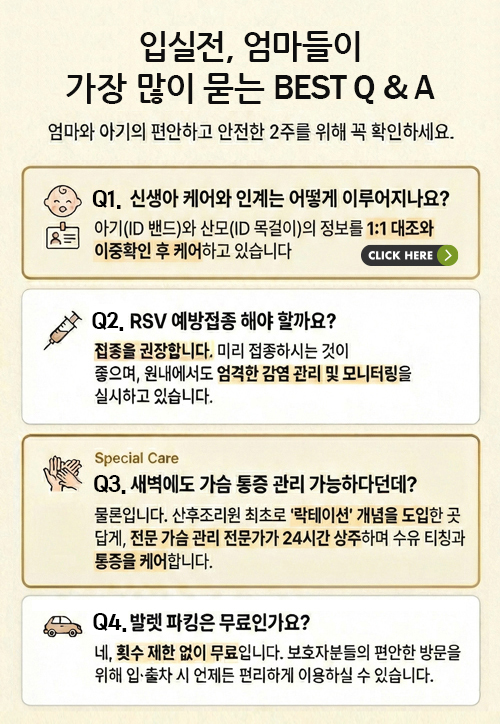 산모와 아기에게 맞춰진 전문 의료진의 체계적인 건강관리와 힐링 서비스가 이루어집니다.